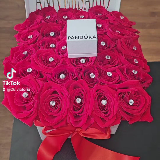 El regalo más extraordinario para momentos inolvidables - Combinación perfecta de 40 rosas premium y joyería Pandora de lujo.