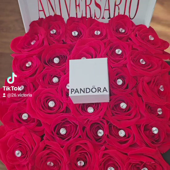 Elige el color de las rosas (rojas, rosadas, blancas, amarillas o mixtas) y el estilo del anillo Pandora según tus preferencias y la ocasión especial.