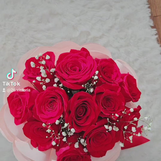 Ramo de 12 Rosas Rojas Naturales - Frescas y Elegantes