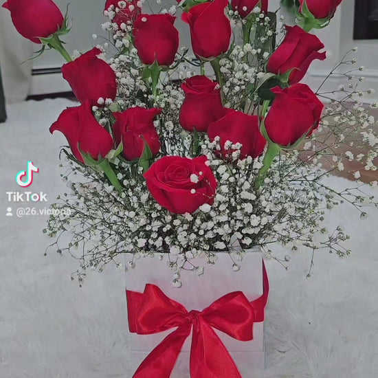 Cada rosa es cuidadosamente seleccionada por su frescura, color vibrante y belleza. El baby's breath complementa perfectamente las rosas, creando un arreglo romántico y elegante que dejará una impresión duradera.