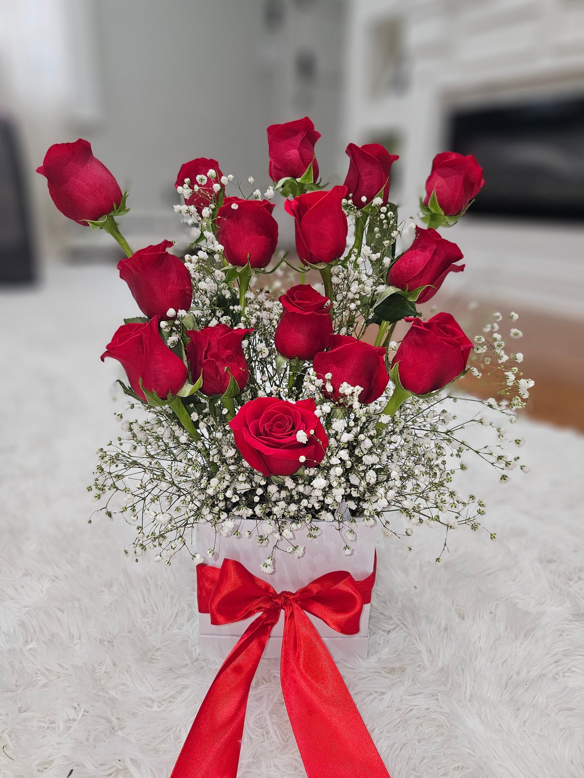 Ramo de 15 Rosas Rojas con Baby's Breath | Floristería Long Island NY