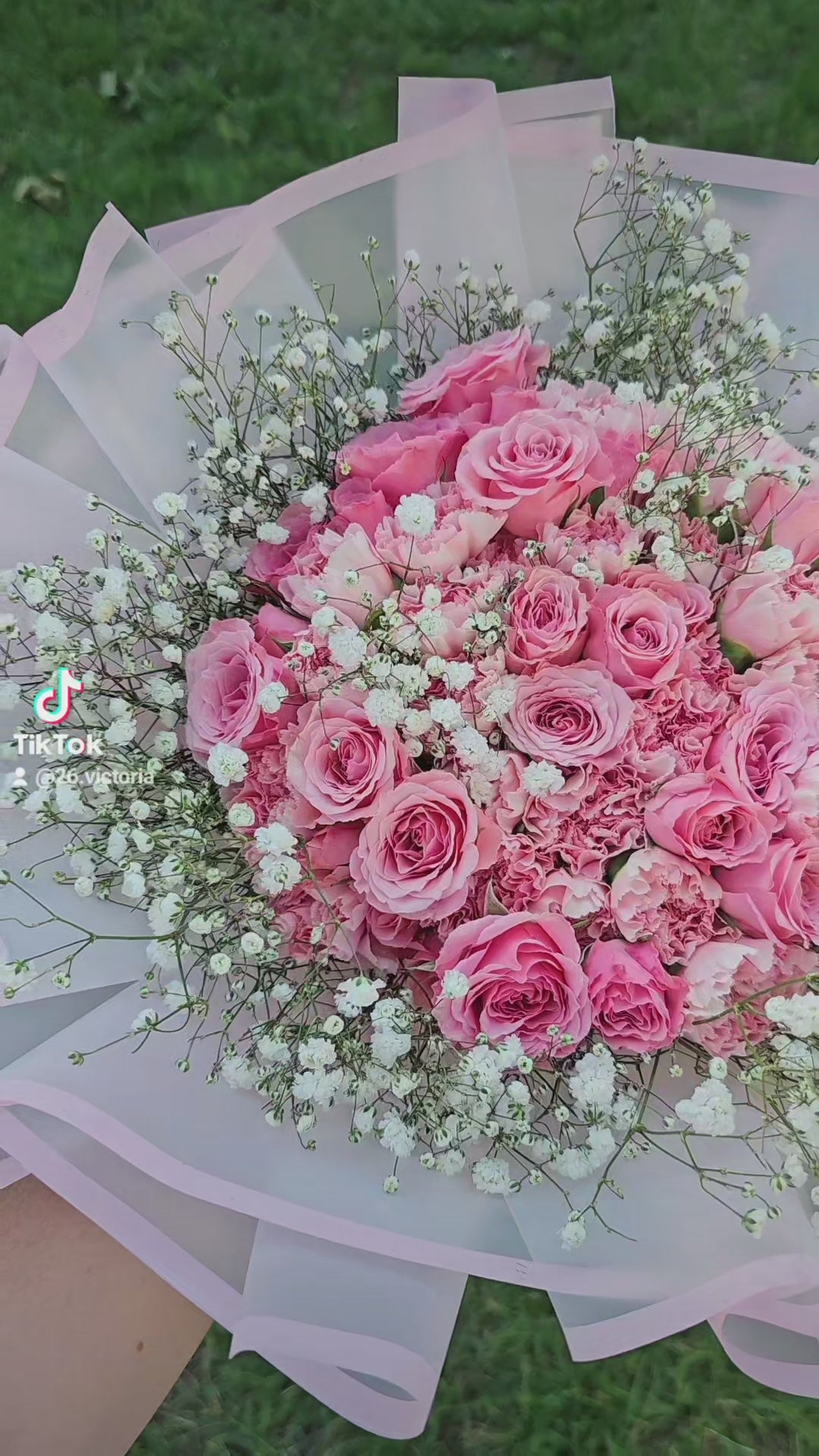 Los claveles son conocidos por su increíble duración (hasta 2 semanas con cuidado adecuado). Combinados con rosas rosadas, crean un ramo hermoso que mantiene su belleza por mucho más tiempo que ramos tradicionales.