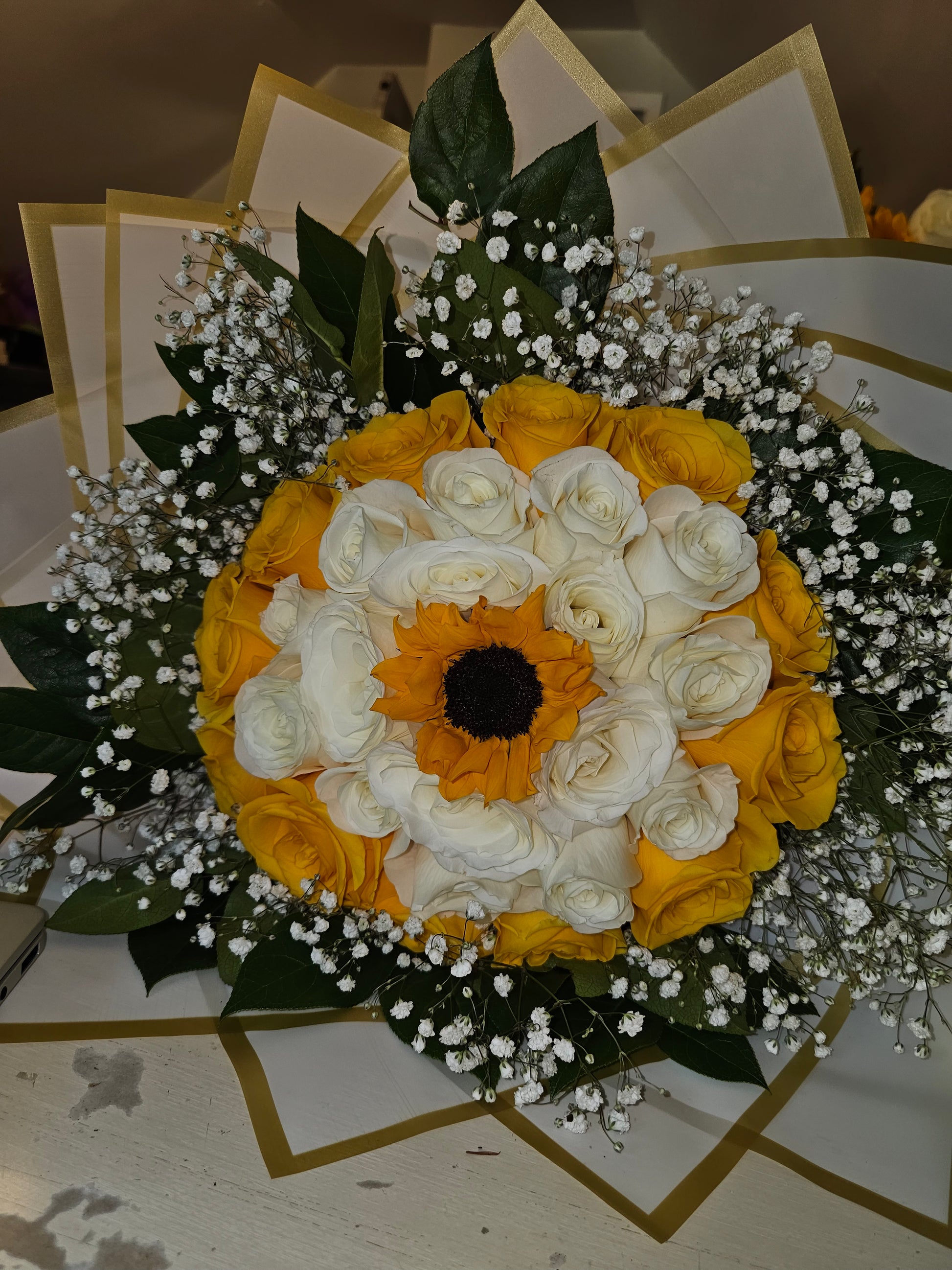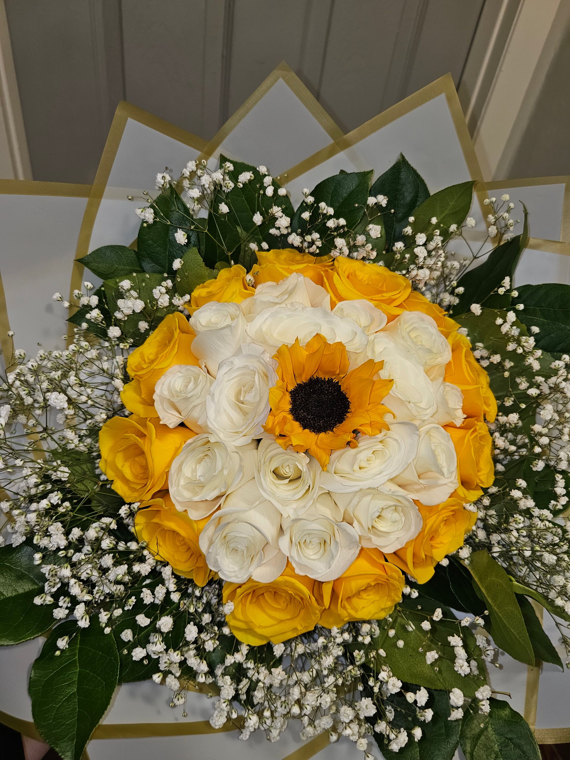 🌼 Ramo Radiante de Rosas Amarillas y Blancas